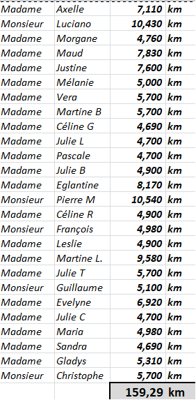 Le nombre de km parcourus par l’ensemble des enseignants s’élève à...159.290 KM.
